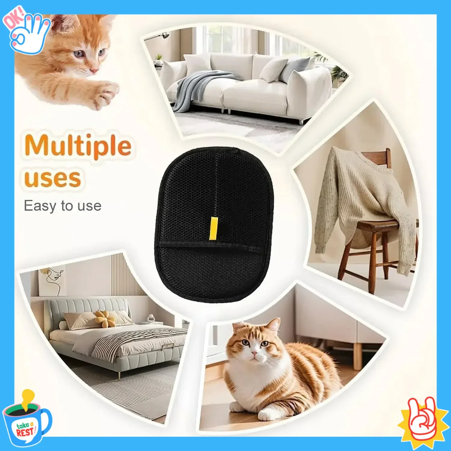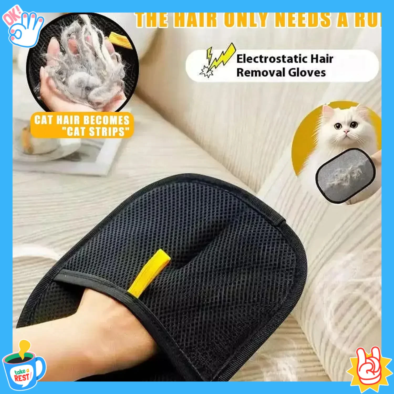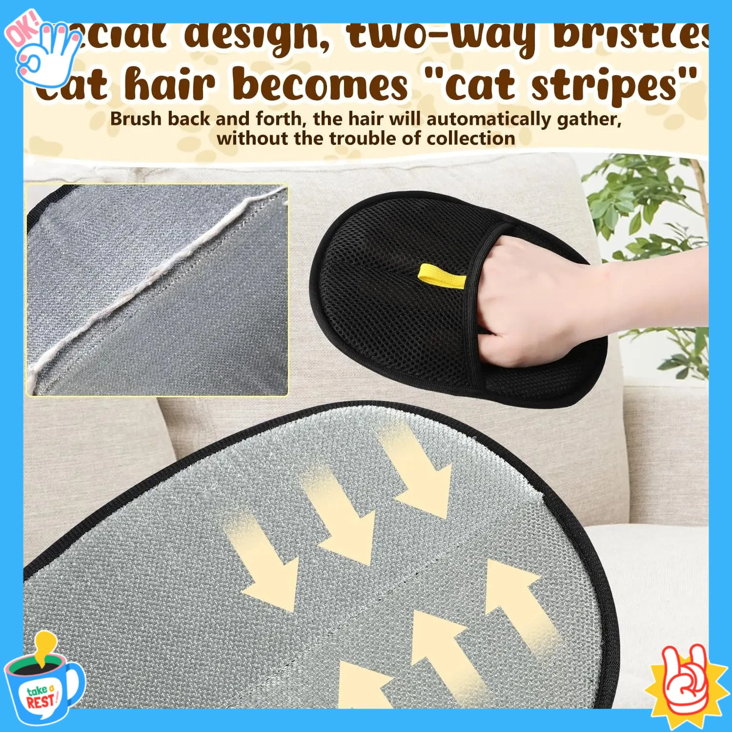 【Pet Hair Removal Glove 】The Pet Hair Removal Glove uses static electricity and a unique design to effortlessly collect pet fur. this glove is easy to use and highly effective at removing pet hair from clothes,furniture,and more